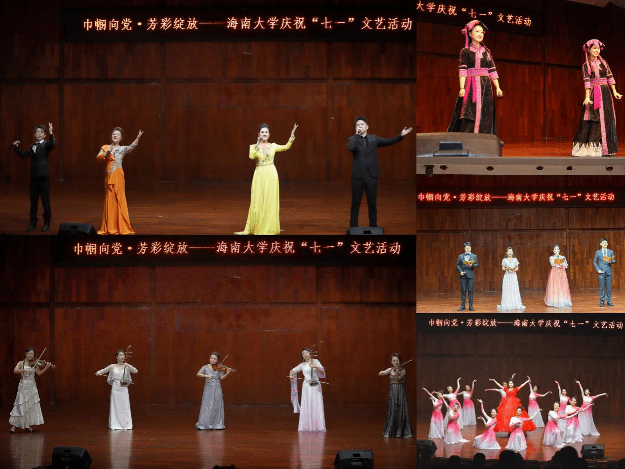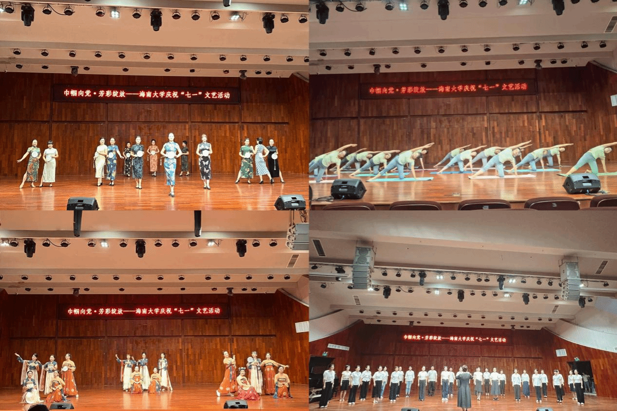 6月30日晚上,海南大学2025年庆祝“七一”“巾帼向党·芳彩绽放”文艺活动在音乐厅举办。这是节目现场表演。宣传部 摄