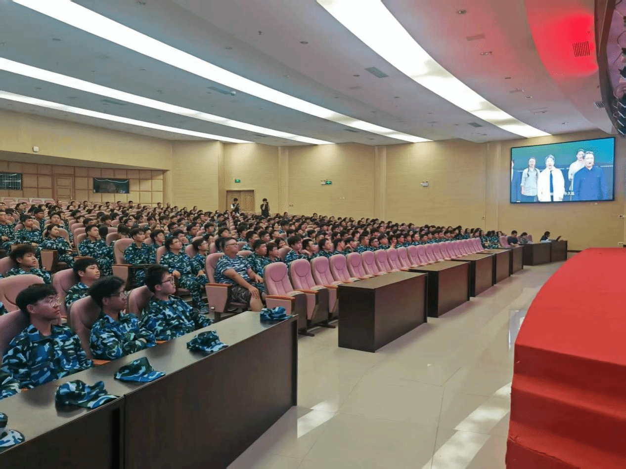 晚上20时30分,2025级本科新生们观看海南大学原创音乐剧《丹心耀南疆》视频。学生们凝神聚力观看,被科学家精神深深感动,现场响起阵阵掌声。